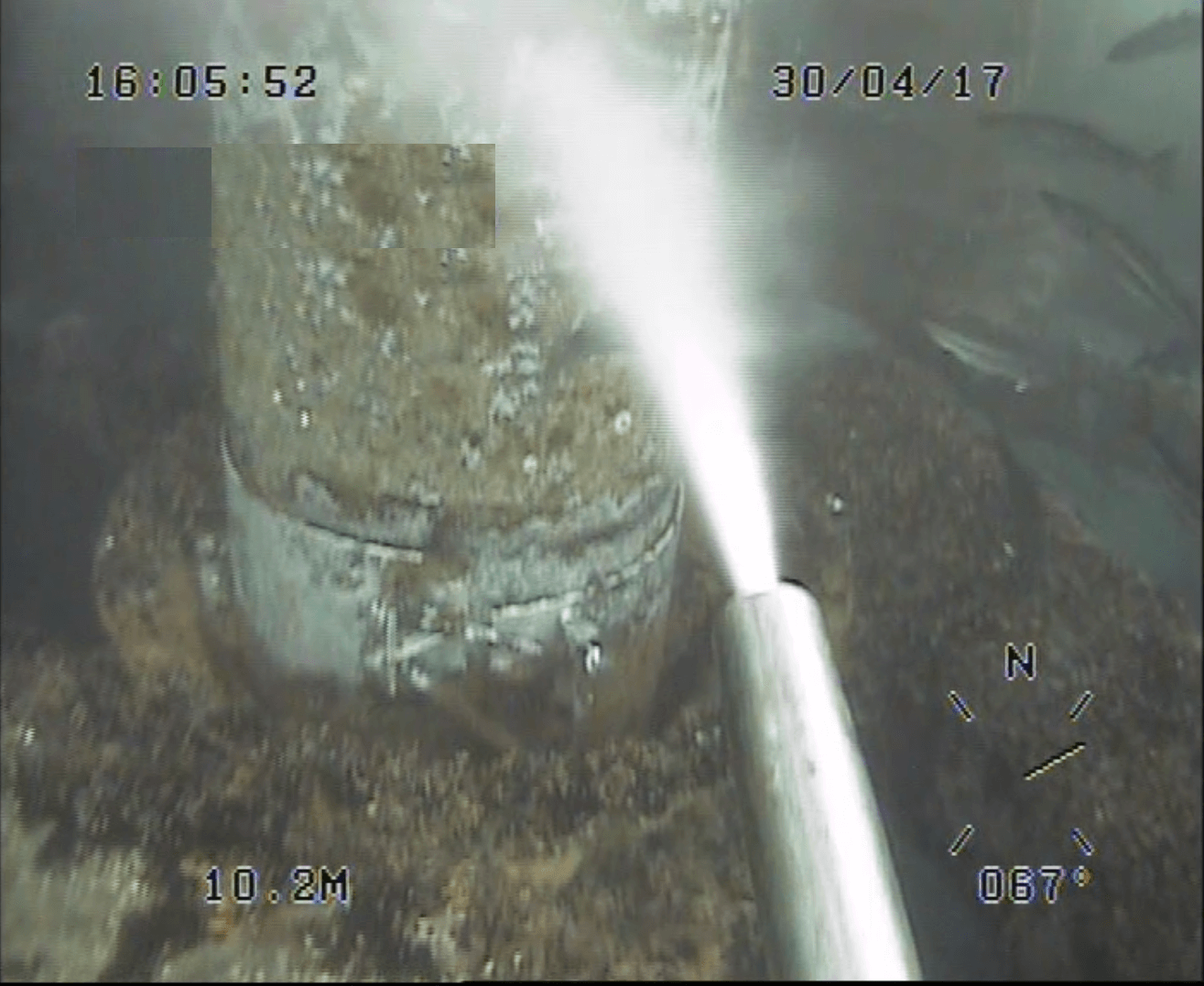 Compared with conventional mechanical cleaning, the CaviBlaster system is much more productive when cleaning heavy marine growth. The cavitation stream pulls material from the surface being cleaned and is unaffected by the thickness of the growth on the surface. The debris cloud is greatly reduced, affording the operator improved visibility.